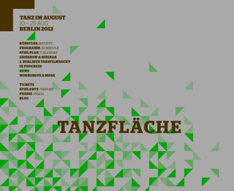 Ergänzt wird das Programm durch die 2. Berliner Tanzfilmnacht im Filmtheater am Friedrichshain und die von Eva Meyer-Keller & Rico Repotente kuratierte sideshow – mit dem sidebar-Treff im Podewil. In der zweiten Festivalwoche kooperiert Tanz im August mit der Tanznacht Berlin 2012 und bezieht so zahlreiche Berliner Künstler mit ein. Gemeinsam präsentieren beide Festivals das ortsspezifische Projekt »X-Choreografen« sowie »Grind« von Van Dinther/Tiikkainen/Kiers.
