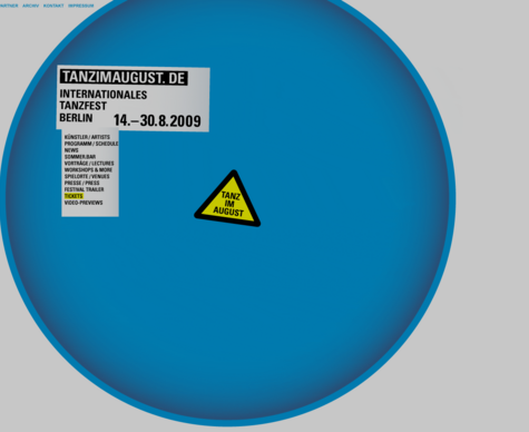 Venues 2009: HAU Hebbel am Ufer (HAU1, HAU2 und HAU3), Sophiensæle, Haus der Berliner Festspiele, Podewil, Halle Tanzbühne Berlin, Radialsystem V, Akademie der Künste (Hanseatenweg) and Potsdamer Platz.