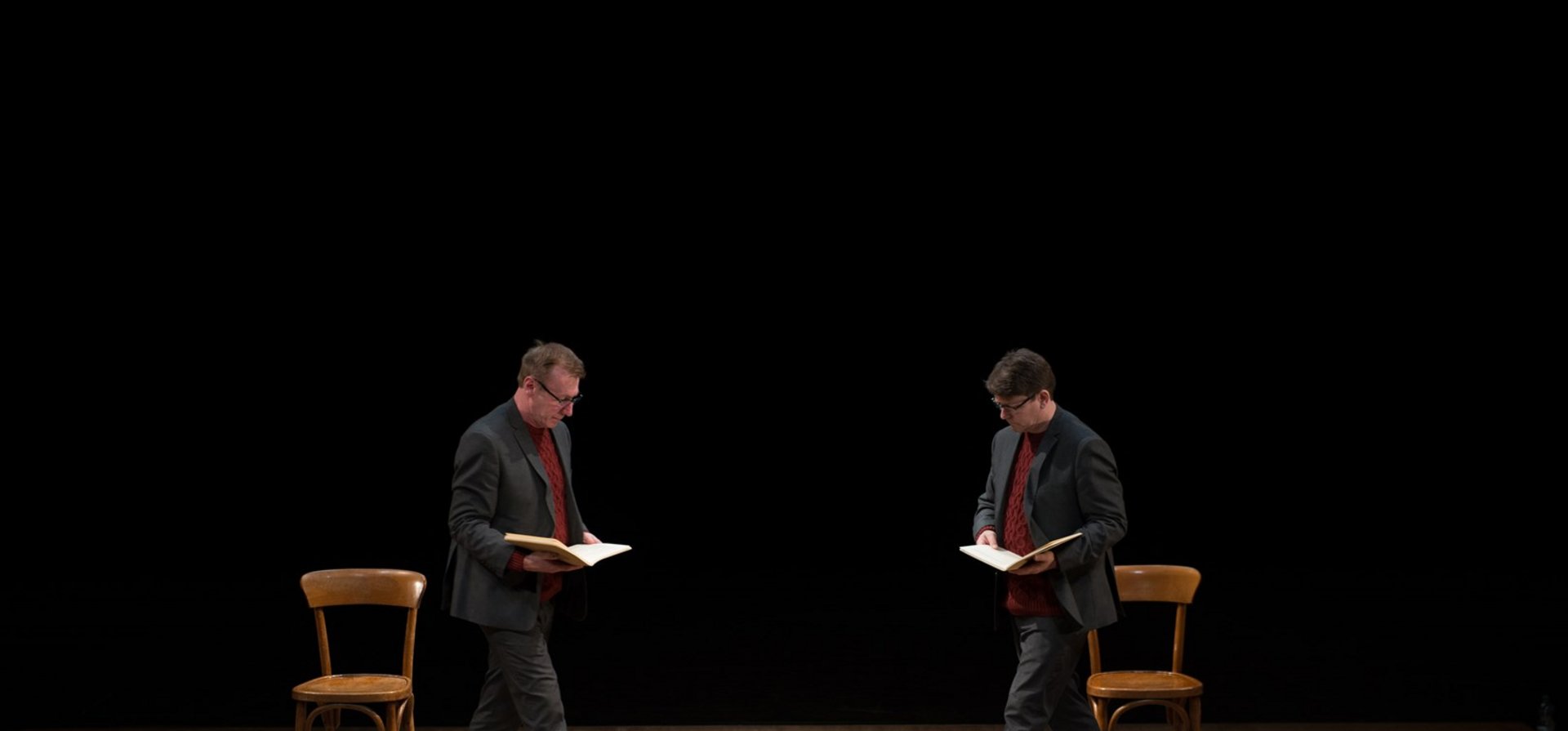A Forced Entertainment performance based on award-winning novel The Notebook (1986), by Hungarian writer Ágota Kristóf. Directed by Tim Etchells, The Notebook tells the story of twin brothers evacuated to the Hungarian countryside during World War II, to stay at their impoverished grandmother’s farm. Understanding the world by a harsh private code, the unnamed narrators are slowly revealed as struggling moralists as Central Europe crumbles into vice, cruelty and opportunism. Kristof’s narrational language – bold, crisp and reduced – provides the basis for a compelling performance.