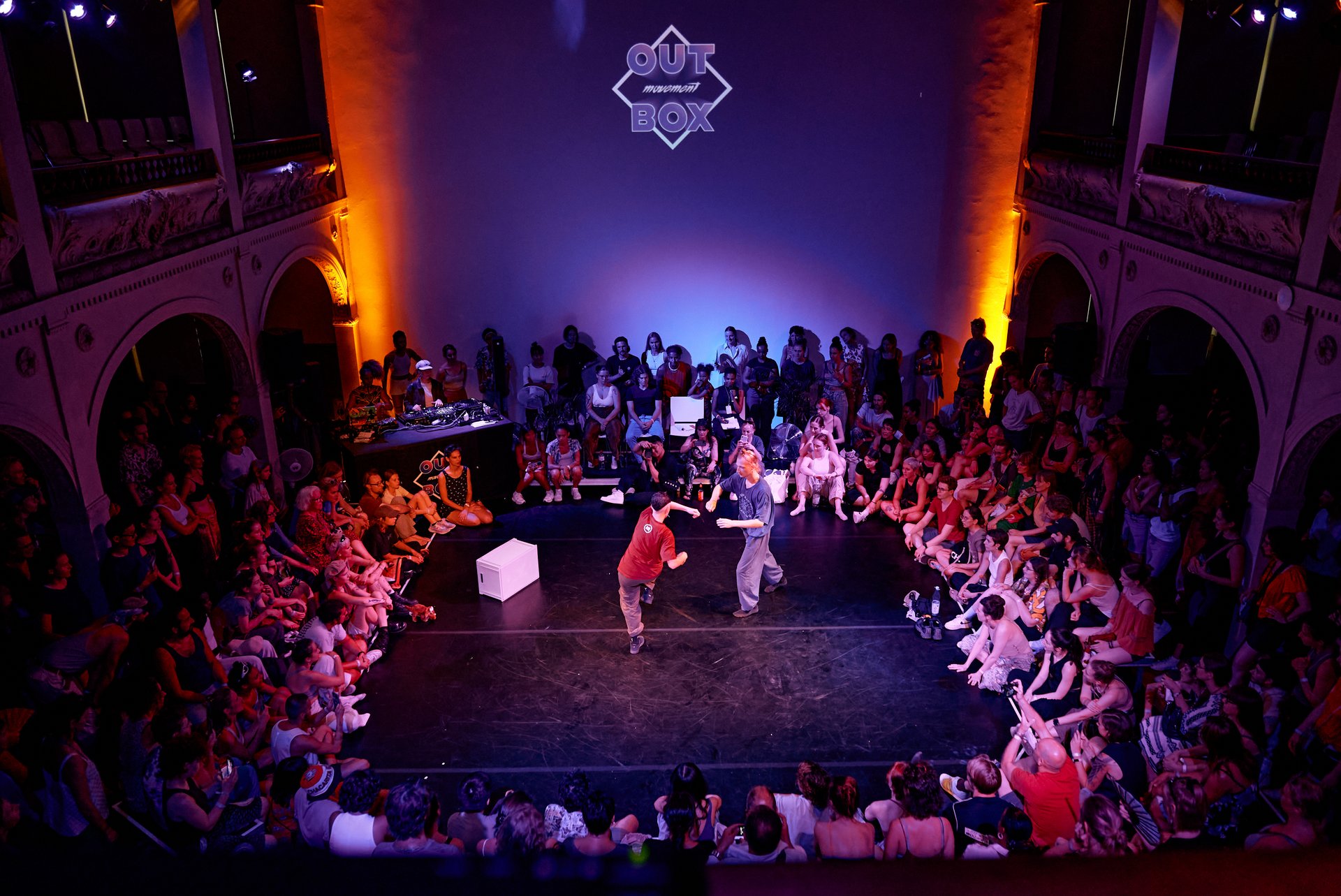 The series “Outbox Me Fusion Dancebattle” brings together kinetic artists of all kinds. With events taking place several times a year in Berlin, the project was first realised at the Studiobühne in the Alte Feuerwache in Friedrichshain. This year, a special edition of “Outbox Me” will be making its first appearance at Tanz im August, with the concept and hosted by Nasrin Torabi. The full spectrum of movement will be on display, from floorwork to belly dancing, along with hip hop, breakdancing and contemporary. The focus is on the collective experience, and the audience is encouraged to cheer along and jam together during the breaks. In a pre-selection round followed by one-on-one knockout dance-offs between the best 16 dancers, a panel of renowned judges will decide who goes on to the next round each time. Over the course of the battle, the dancers are expected to interact with each other and improvise together. You’re guaranteed to see some magic on the dancefloor!