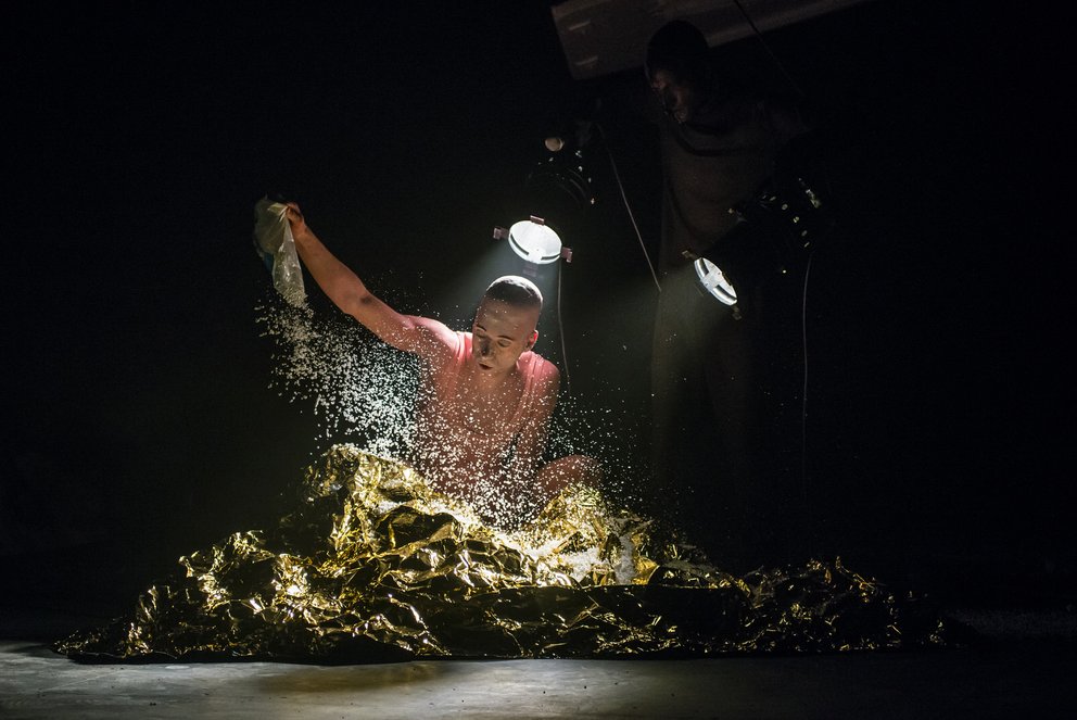 Der Performer, Film- und Theaterschauspieler Euripides Laskaridis, der unter anderem für Robert Wilson und Dimitris Papaioannou arbeitete, ist auch Regisseur und Filmemacher. Er hat sowohl Architektur wie auch Darstellende Künste am Brooklyn College in New York studiert und schafft ein vielschichtiges künstlerisches Universum, das auf Elemente des Burlesken, des Kinos, des Zirkus’ und des Theaters des Absurden zurückgreift. Laskaridis ist bekannt für seine beherrschte Exzentrik, seinen scharfen Sinn für Dramaturgie und seine lebhafte Kreativität. Er gilt als Neuentdeckung der griechischen Kunstszene, wurde in die Plattform Aerowaves aufgenommen und war 2016 Stipendiat der Pina Bausch Foundation. Seine Kompanie OSMOSIS lebt die Widersprüchlichkeit ihres Namens, der sowohl einen starken, erschütternden Schub, als auch den Einfluss, den Gegensätze aufeinander haben, beschreibt. Diese szenischen Ausgangspunkte sind Teil einer komplexen, fragmentarischen Erzählung, die verschiedene Genres und Töne mischt, um eine Vielzahl an Deutungsmöglichkeiten zu eröffnen. In “TITANS” setzen sich zwei Freaks in einer überzeichneten Mondlandschaft, jenseits der Wirklichkeit, mit ihrer Langeweile auseinander. Sind sie ein Spiegel der Menschheit oder vielmehr fremde, abstoßende Figuren? Jedenfalls sind es zwei von ihrem Leben enttäuschte Wesen, die der Sinnlosigkeit ihrer Existenz ein kathartisches Lachen entgegensetzen.