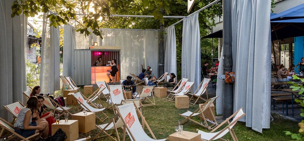 Das Festivalzentrum im HAU Hebbel am Ufer (HAU2) ist der zentrale Treffpunkt für Künstler*innen, Zuschauer*innen und Festivalmacher*innen. Hier wird getanzt, verweilt und diskutiert. Die Tageskasse für Tickets, der Infocounter und das Café & Restaurant WAU mit seinen Speisen und Getränken sind hier beherbergt. Für das Festivalzentrum ist in diesem Jahr von dem Berliner Architektenbüro c/o now ein temporärer Pavillon gestaltet worden. c/o now setzt nicht nur Projekte in Deutschland, Österreich und Norwegen um, sondern beschäftigt sich auch mit dem Feld von Stadtforschung und Architektur.