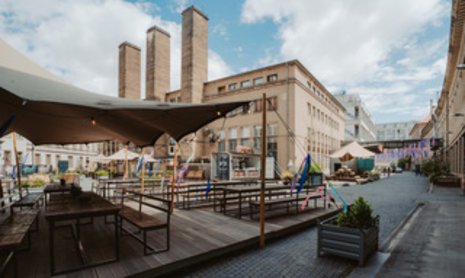 Der barrierefreie Zugang zu allen Veranstaltungsräumen (mit Ausnahme des Decks) ist im Radialsystem gewährleistet. Im Foyer befindet sich ein barriere-freies WC.